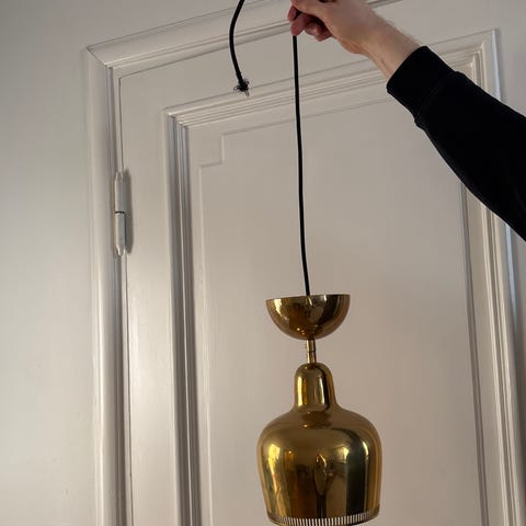 Kauniisti patinoitunut Artek A330s Savoy riippuvalaisin. Saatavilla 2 kappaletta, molemmissa johto noin 2,5 metriä. Kattokupeissa valmistajan tarrat.