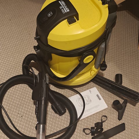 Myydään vähäiselle käytölle jäänyt Kärcher 4002 tekstiilipesuri ja pölynimuri, joka puhdistaa sekä märän että kuivan lian.