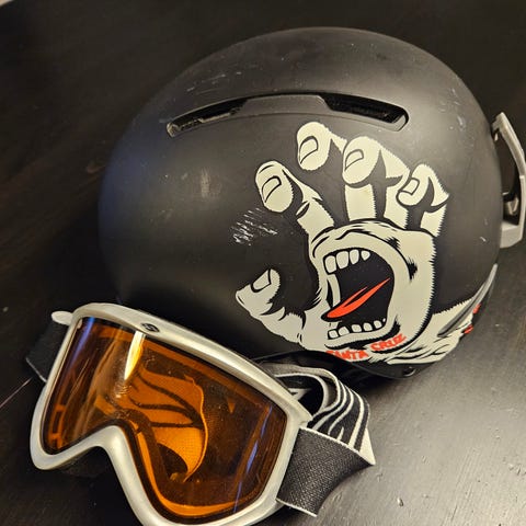 Lasten Everest laskettelukypärä 50/54 cm ja Anon laskettelulasit. Laskettelulasit ovat oranssisävyisellä linssillä ja joustavalla nauhalla, silikoni pitää lasit paikoillaan. Kypärä Mips -järjestelmällä.