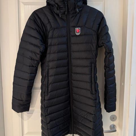 Fjällrävenin musta Snow Flake parka kevytuntuvatakki kokoa xs. Huippuluokan kevytuntuvatakki, pituudeltaan parka n. 85cm olka-helma. Naisten malli, vyötärö kaventuu kivasti. Sivuilla vetoketjutaskut ja vasemmalla povitasku vetoketjulla. Kainalo-kainalo n. 45cm, vyötärö kapeimmalla kohtaa n. 41 cm. Moitteettomassa kunnossa, ei ole pesty, ei tarvetta ja untuvat tasaisesti. Tsekkaa mitat jos käytät Fjällrävenin xs-s tavallisesti, mitoitus mielestäni sama kuin Kiruna padded parka, xs napakahko tavanomaiseen Fjellun xs-takkiin verrattuna. Tarkemmat tiedot takista löytyy mm. Fjällrävenin ja Partioaitan sivuilta, Ovh 550-580 eur.