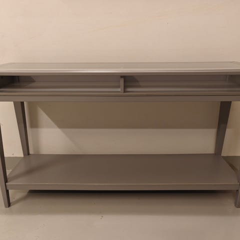 Myydään Ikeasta ostettu musta avohylly, jossa kolme lasista hyllylevyä. Ylin ja alin taso ovat käännettäviä tasoja, tummanruskea/musta (katso kuvat). Hylly on hyvässä kunnossa ja kaikki tasot ovat ehjät.