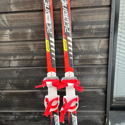 Lasten kenkiin kiinnitettävät Peltonen sukset ja mukaan sauvat. Nouto Heinola keskusta.