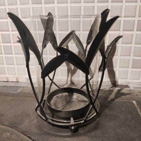Monipuolinen esine. Laita pitkä kynttilä ja vettä niin kynttilä nousee vedestä sitä mukaa kun palaa. Kaunis yhdelle kukalle. K-26cm