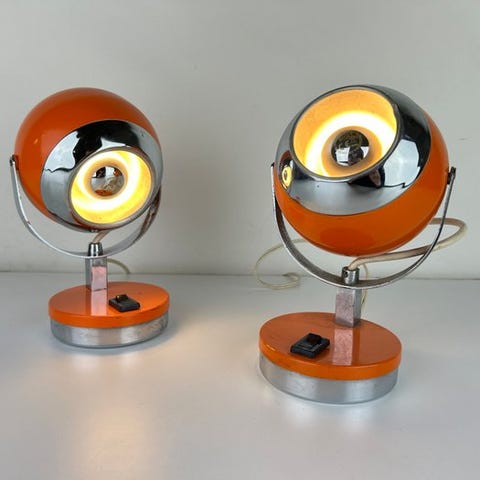 Pöytävalaisin (2) - Pari Eyeball Space Age -lamppuja 60- ja 70-lukujen