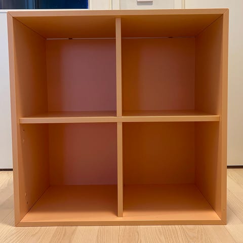 Katso kuvat!! Halkeama sivussa ja takavanerissa. Kosmeetisistä haitoista huolimatta toimii hyvin. Meiltä suoraan käytöstä ollut niin seinää vasten etteivät kosmeettiset haitat näy. Laatikot toimii hyvin ja on siistit, mutta kantaessa heiluu, kuva yhdestä laatikosta kun en ehtinyt tyhjentää. Paljon tavaraa mahtuu.