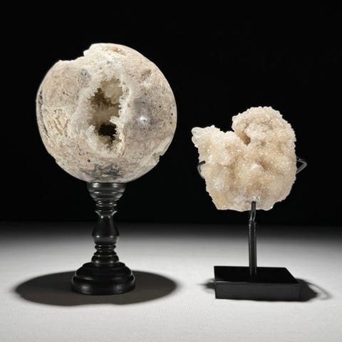 Ei lähtöhintaa - upea pari kristallikvartsia Pallot räätälöidyissä teline