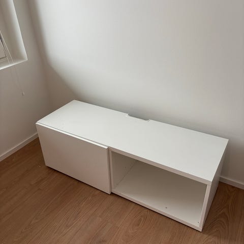 Hyväkuntoinen tummanruskea tv taso.