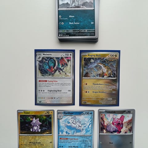 Pokemon-keräilytuotteet. Sisältää Pokemon-kortteja vuoden 2023 sarjasta Scarlet & Violet, vuoden 2024 sarjasta Surging Sparks sekä Nintendon vintage Pokemon-figuureja.