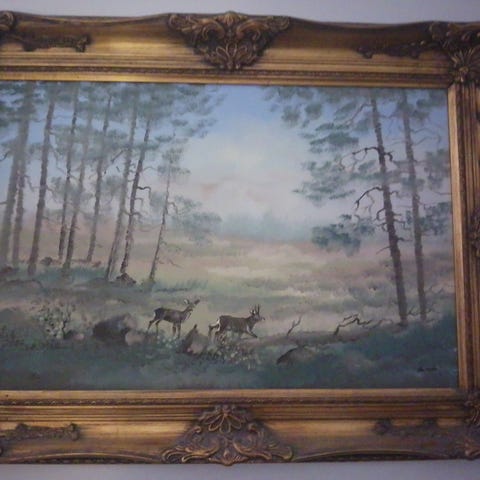 Taulu yöllinen metsä. Ari Rantala -83. Aitoustodistus löytyy. 76cm x 64cm