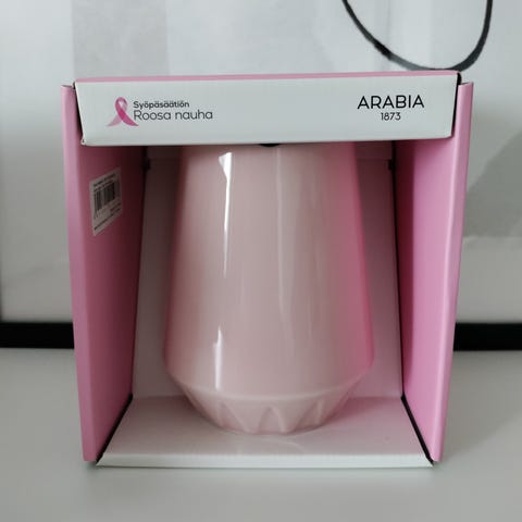 Suunnittelija Kaj Frank. Vaaleanpunainen, ehjä. Käytetty viimeksi 60-luvulla.