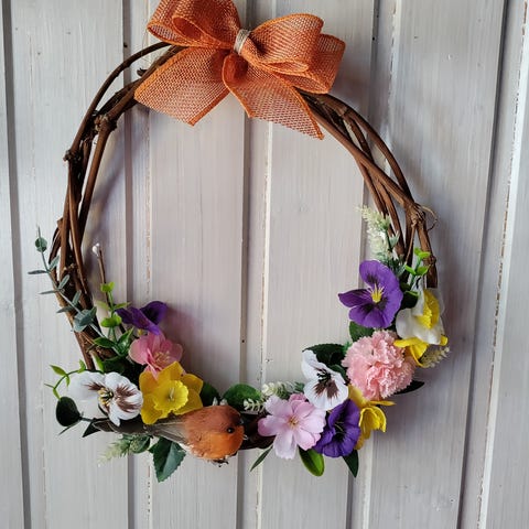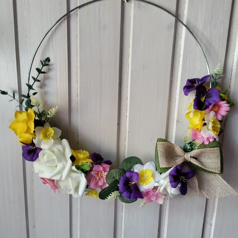 Hakusanoja: ovikoriste, kranssi, seinäkoriste, pääsiäiskoriste, kevät asetelma, tekokukat, silkkikukat, pöytäkoriste, ovikranssi.