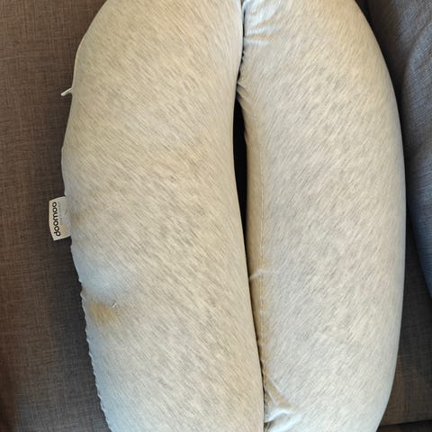 Hyväkuntoinen imetystyyny seuraavalle. Harmillisesti yhdestä kohtaa likaantunut (auton peräkontissa reissussa). Kts. Kuva. Tahra ei lähtenyt pesussa pois. Irrotettava päällinen. Savuton ja eläimetön talous.