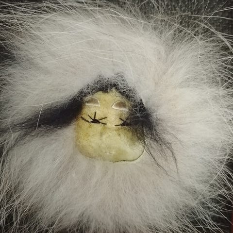 Turkistupsu on valmistettu aidosta ketun turkiksesta. Tupsussa on kiinni lanka, jolla sen saa vaikkapa kiinni johonkin. Halkaisija noin 12cm. Ehjä ja siistikuntoinen kaikinpuolin. Ei ole ollut missään käytössä.