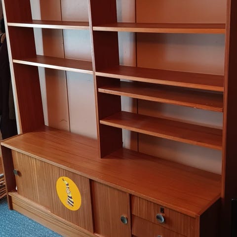 Myydään vanha teak kirjahylly.