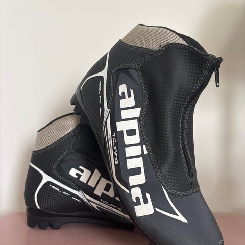 Alpina Racing RC hiihtomonot. Punaiset monot, joissa keltaiset yksityiskohdat. Varressa on tarrakiristys ja vetoketju päällä helpottamassa pukemista. Sopivat luistelutyylin käyttöön. Koko 42, siteiden yhteensopivuus kannattaa varmistaa.