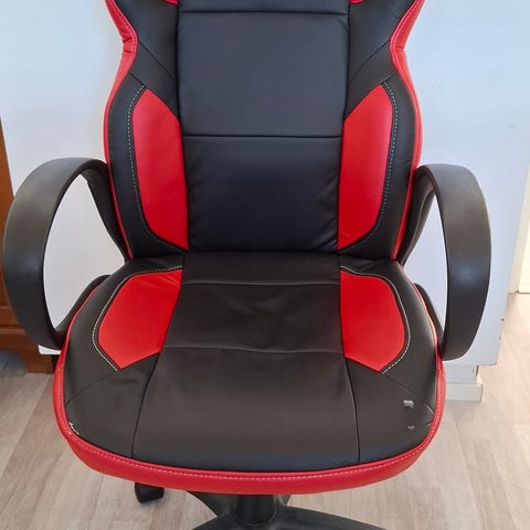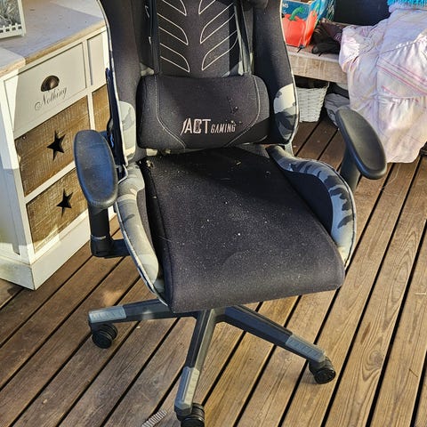 Musta pyörivä tuoli, kaasujousi ei toimi. Ei nouse ylös. Tuolissa käytön jälkiä. Saa hakea, jos jollain käyttöä tai varaosiksi.