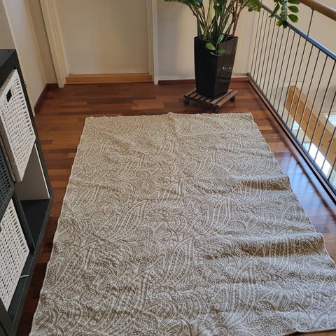 Ylellinen, pehmeä ja todella kaunis matto jokaista yksityiskohtaa myöten. Laadukas matto on ostettu Jotexilta kesäkuussa 2025 (ovh399€), ja nyt vaihtuu sisustus vaaleampaan, niin uuden maton alta myydään tämä pois.