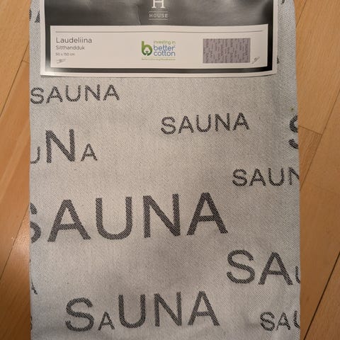 Saunatonttu laudeliina Tämä puoli päin persettä teksti