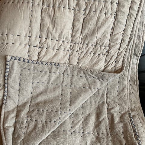 Hyväkuntoinen, iso beeshin värinen sängyn peitto. Kooltaan 270*270 cm. Pesty ja käytetty tuoksuttomassa kodissa. Painoltaan kevyt, ottaen huomioon koon. Toisella puolen mattapinta, toisella matalakiilto. Voi käyttää molempia puolia.