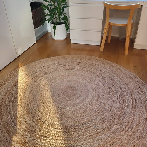 Hyväkuntoinen ja siisti "Milo" pyöreä puuvillamatto. Halkaisija noin 130 cm. Väri oliivinvihreä. Materiaali 100 % puuvillaa. Matossa on kudottu pinta ja se soveltuu esimerkiksi olohuoneeseen, makuuhuoneeseen tai eteiseen. Voidaan pestä 30 °C:ssa. Kamera haalistaa väriä, maton keskikohta ei ole vaaleampi, kuten kuvassa ehkä näyttää. Ei tupakanhajuja tai eläintenkarvoja.