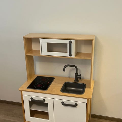 Uutena ostettu ja mieluisaksi tuunattu leikkikeittiö.