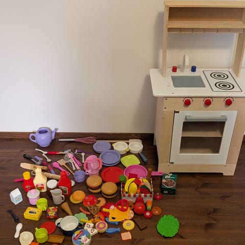 Pääasiassa ollut yhden lapsen leikeissä mukana, mistä on tullut vähäistä kulumaa sinnetänne. Keittiön yleisilme on kuitenkin edelleen siisti ja aivan ihana.