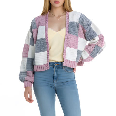 Käsinneulottu neuletakki puuvillasekoitteesta, palmikkoa, huivikaulus ja takana virkattu kukkaympyrä. Koko n. 38, väri pinkki. Myynnissä myös muualla.