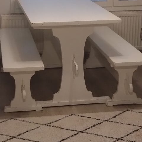 Valkoinen pirttipöytä. Koko 125 x 74 x 72cm.