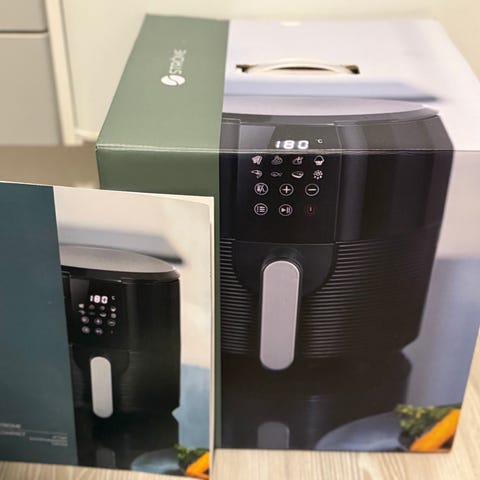 Tässä olisi viime kesänä ostettu hyvä kuntoinen air fryer myynnissä. Palvellut minua hyvin. Kompakti eli helppo säilyttää.