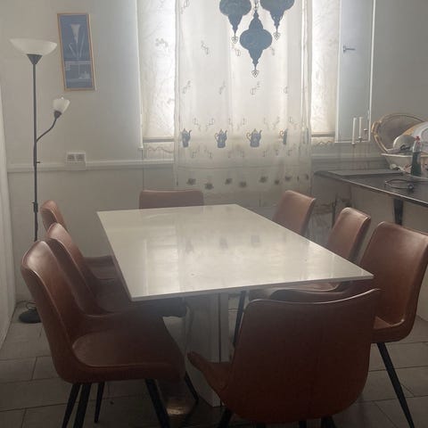 Muutaman vuoden käytössä ollut ruokapöytä nyt myynnissä. Erittäin hyvässä kunnossa, ei käytön jälkiä. Marmorikuvio, pinnoitettua mdf-levyä, metallijalat. Koiratalous.
