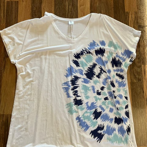 Olkapäät paljastava kaula-aukko mitä kiertää kuminauha. Rinnanympärys 120 cm. Pituus 60 cm. Hihan kainalomitta 42 cm
