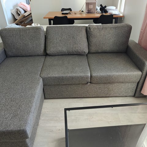 - Sohvan saa levitettyä vuoteeksi helposti.