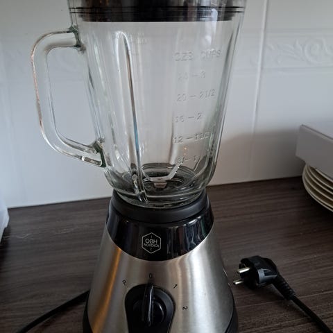 Tässä tarjolla OBH Nordican blenderi (Blender smoothie twister) ja kaksi kannallista sekoituspulloa. Koneessa on moottoriosa ja teräosa. Varusteisiin kuuluu myös pieni muovinen puhdistustikku. Sekoituspullot ovat vetoisuudeltaan noin seitsemän desilitraa. Käyttöohjeet ovat myös vihkosessa myös suomeksi.