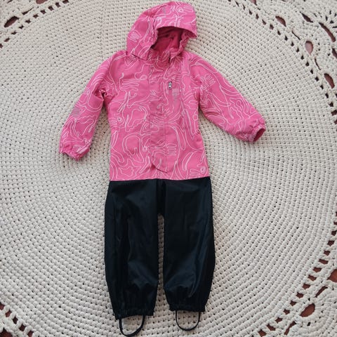 Lasten haalari tytöille, koko 98. Väriltään sininen, jossa kuviollinen pinta ja kontrastivärinen vuori. Haalarissa on huppu ja edessä pitkä vetoketju helpottamassa pukemista. Sopii arkeen ja ulkoiluun lapselle, joka käyttää kokoa 98.