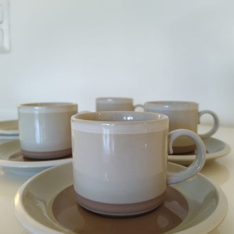 Kupit ja lautaset, kuvassa olevat sokerikko ja kermakko myyty.