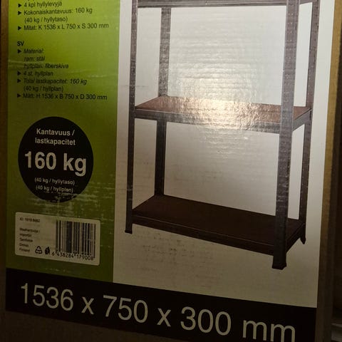 Uutta vastaavassa kunnossa, ollut itsellä vaatehuoneessa hyllyinä. Kahta eri kokoa. Kaksi hyllyä syvyys 58, pituud 138cm. Toisia hyllyjä pituus 135, syvyys 38cm 3 kpl. Seinään kiinnitettävät pifikkeet 204cm. Vain nouto.