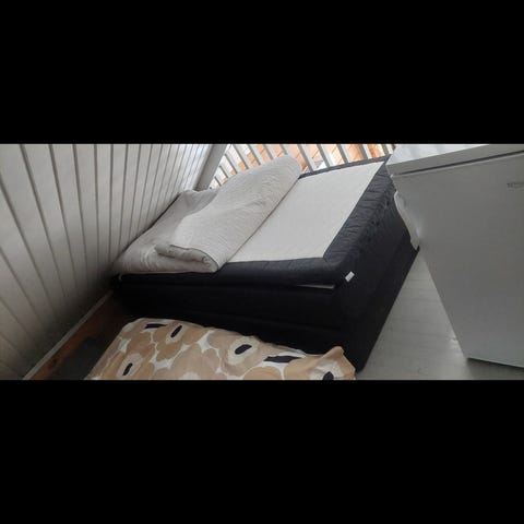 Sänky hyvässä ja siistissä kunnossa. Sijauspatjan kangas pesukoneessa pestävä.