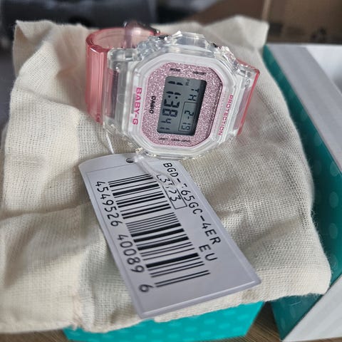 Mukaan tulee alkuperäinen ranneke ja Casion pakkaus kaikkinensa.