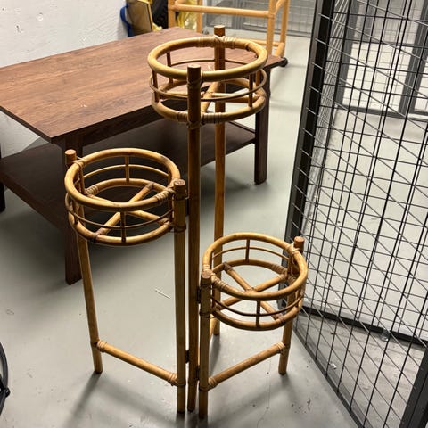 Rottinkisella kukkatelineellä rouheutta sisustukseen. Kotisi viherkasvit kauniisti esille!