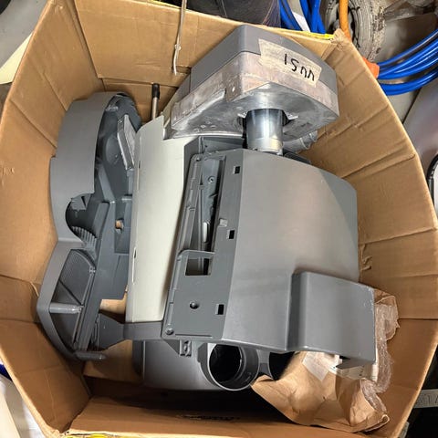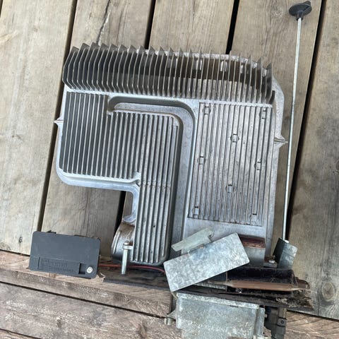Toimiva Truma Combi 6E eli kaasu ja sähkökayttöinen lämmitin. Kaasulla teho 6kw ja sähköllä 1,8kw. Pakettiin kuuluu lämmitin, ohjauspaneelit kaapeleineen, letkuliittimet vesiletkuille (kuvassa paikallaan) ja huonetermostaatti kaapeleineen.