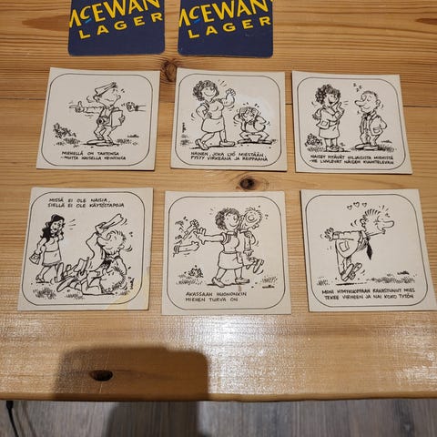 Hienot ja hienokuntoiset lasin aluset. 14 kpl. 6 kpl autoaihe. 6 kpl vintage ja 2 sprite. Peltiä.