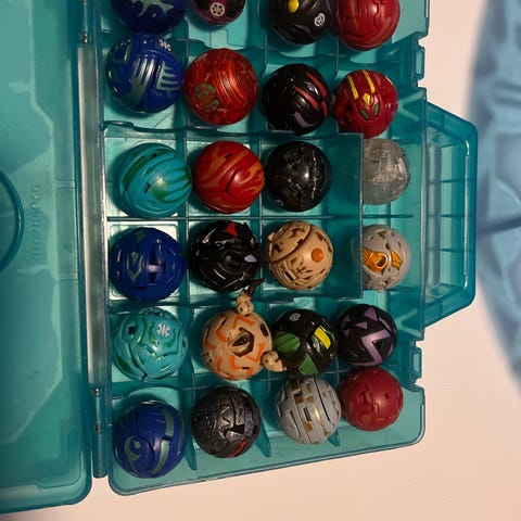 Bakugan säilytyslaatikko ja Bakugan-pallot.