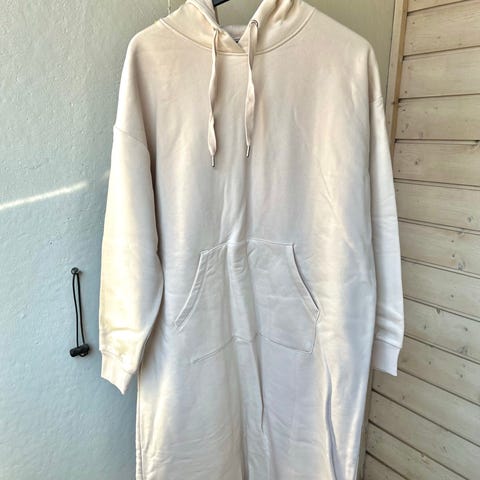 Sinnuu pitkä taskullinen huppari, koko M. Kaunis vihreä sävy. Hupussa kiristysnyörit, hihansuissa resorit, helmassa halkiot.