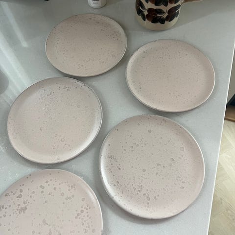 Keraamiset uniikit lautaset halvalla (5€ kpl). Lautasissa on orgaanisia, pyöreitä ja roiskemaisia kuvioita. Värit ovat pääosin musta, valkoinen ja harmaan sävyt.