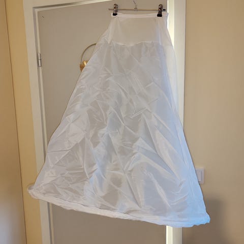 Helma on todella leveä ja näyttävä ihan sellaisenaan, kuvissa mekon alla ei ole vannehametta.