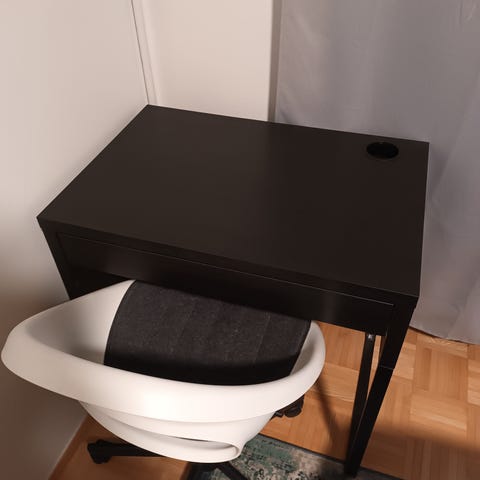 Ikean työpöytä, jossa vähän kulumaa pöydän pinnassa, joten siinä on muovi päällä. Vain haku.