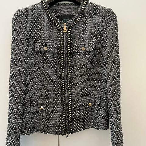 Myydään Chanelin takki, valmistusmaa Italia. Kokomerkintä L, mutta vastaa kokoa xs. Siistikuntoinen tikkitakki.