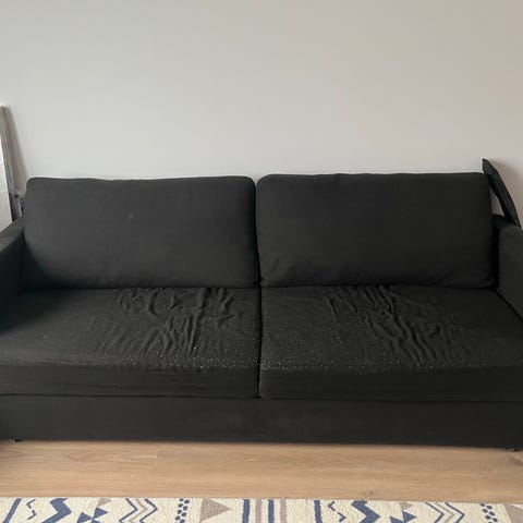 Useamman vuoden vanha, kuitenkin hyvässä kunnossa vaikka käytön jälkiä löytyy. Savuton talous, ei lemmikkejä. Mitat otettu tyynyjen kanssa. Tilalle tulossa isompi sohva joten sen takia luovumme:) vain nouto