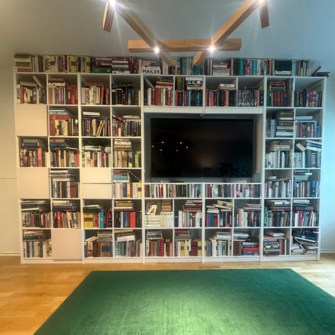 1. Kirjahylly jossa myös kirjoituspöytä: 104*250*33 cm: - 200 euroa