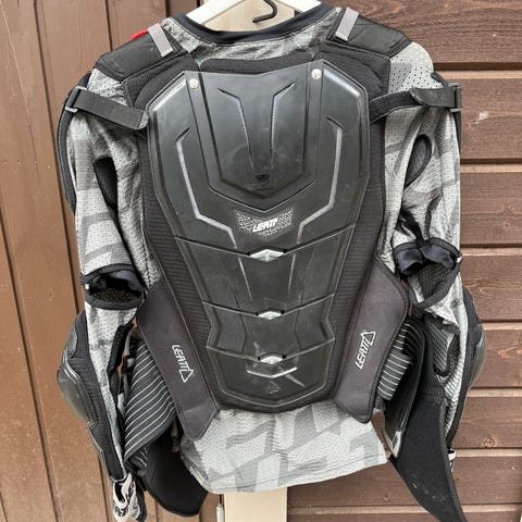 Klim tek vest rintapanssari, olkaosien etureunasta leikattu vähän pois, jotta niskatuki sopii paremmin. Koko XL.